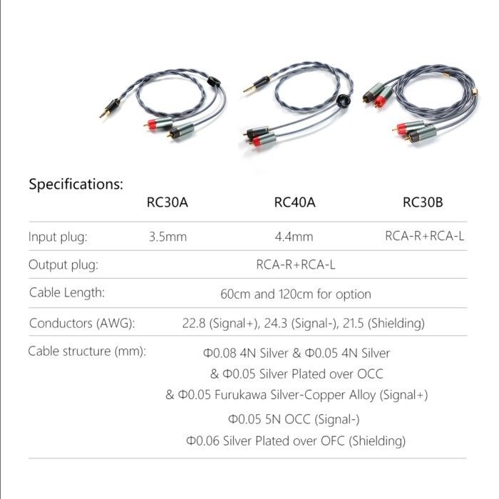 ddHiFi RC30A / RC30B / RC40A Shilded Silver RCA Analog Cables