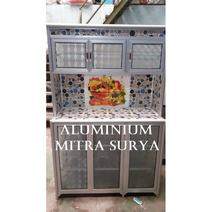 Rak Piring Aluminium Kaca Keramik Super 3 Pintu RATA (CA) Lemari Piring Almunium Besar