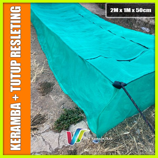 BEST SELLER Keramba ikan Premium waring jaring kasa hijau plus tutup resleting ukuran 2x1x50 berkualitas terbaik