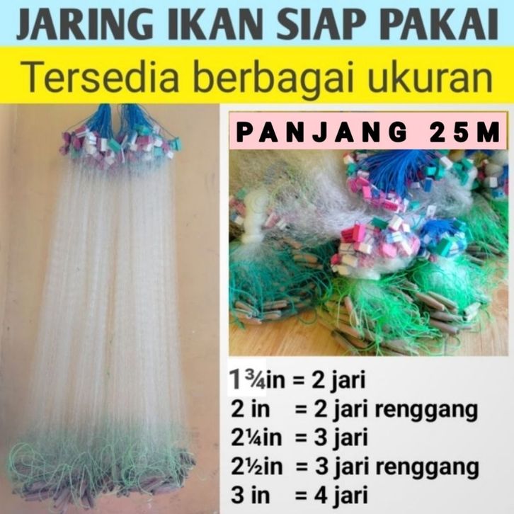 BEST SELLER Jaring Ikan Siap Pakai Panjang 25m, Dan Bervariasi Mulai 2 Hingga 4 Jari berkualitas terbaik