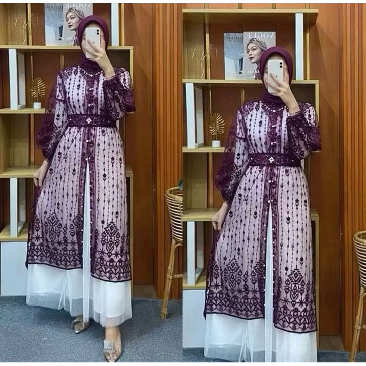 Outer Brukat OUTER BROKAT KONDANGAN WISUDA OUTER BROKAT AZZURA CARDIGAN LENGAN PANJANG LONG TUNIK