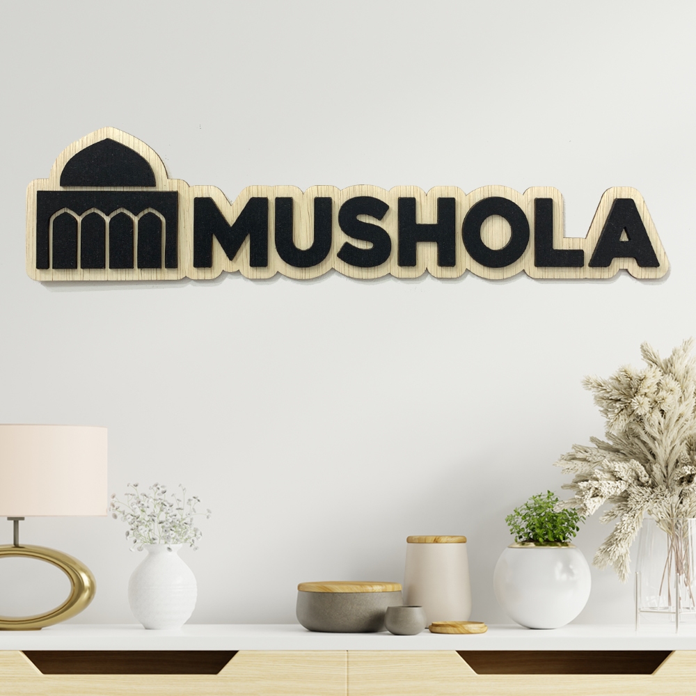 Hiasan kaligrafi kayu tulisan mushola pajangan dinding islami dekorasi ruangan mushola rumah