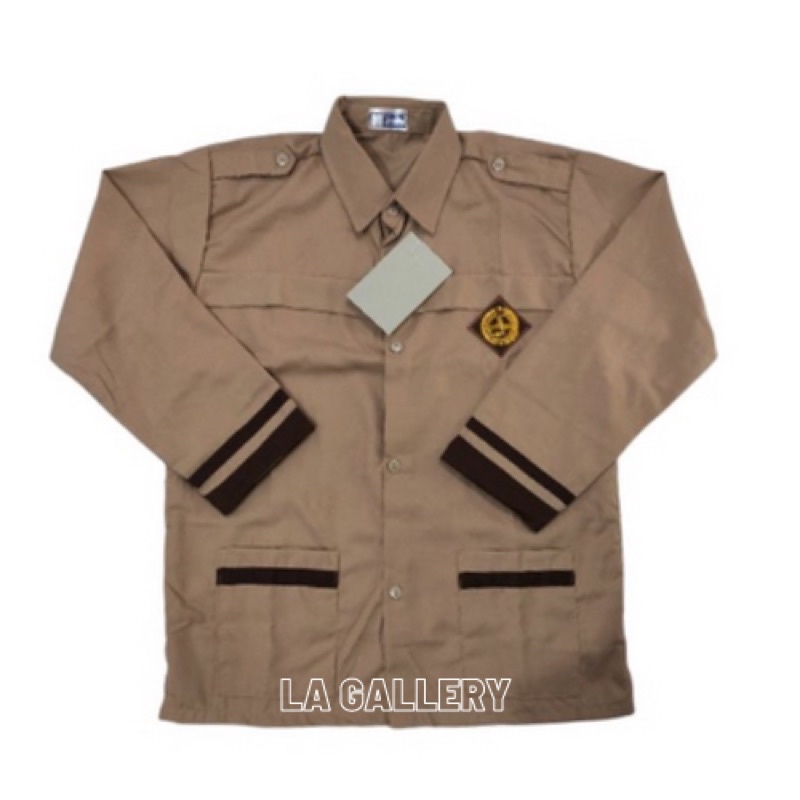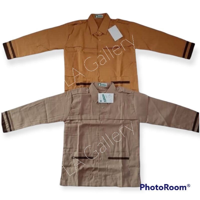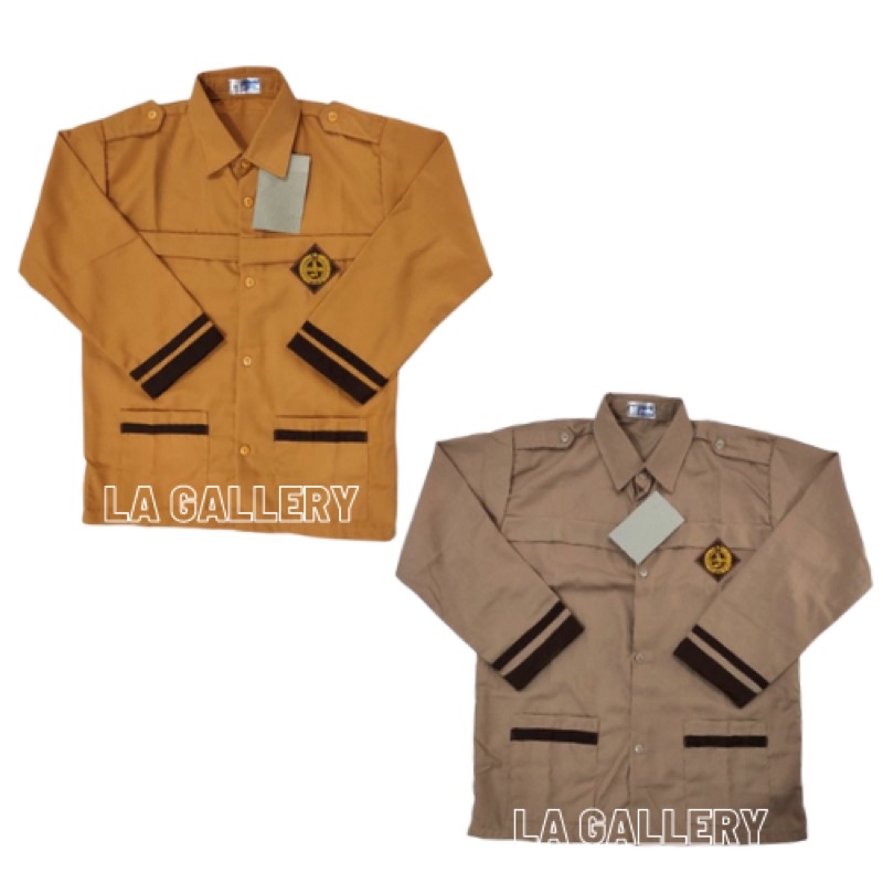 Seragam Sekolah - Kemeja Pramuka Siaga Panjang SD-SMP Coklat Susu dan Kuning Bahan Oxford Super