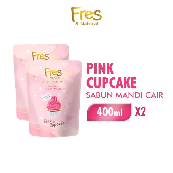Fres & Natural Sabun Mandi Cair Longlasting Fragrance Pink Cupcake Pouch 400 Ml X2 Sabun Mandi Untuk Mencerahkan Kulit