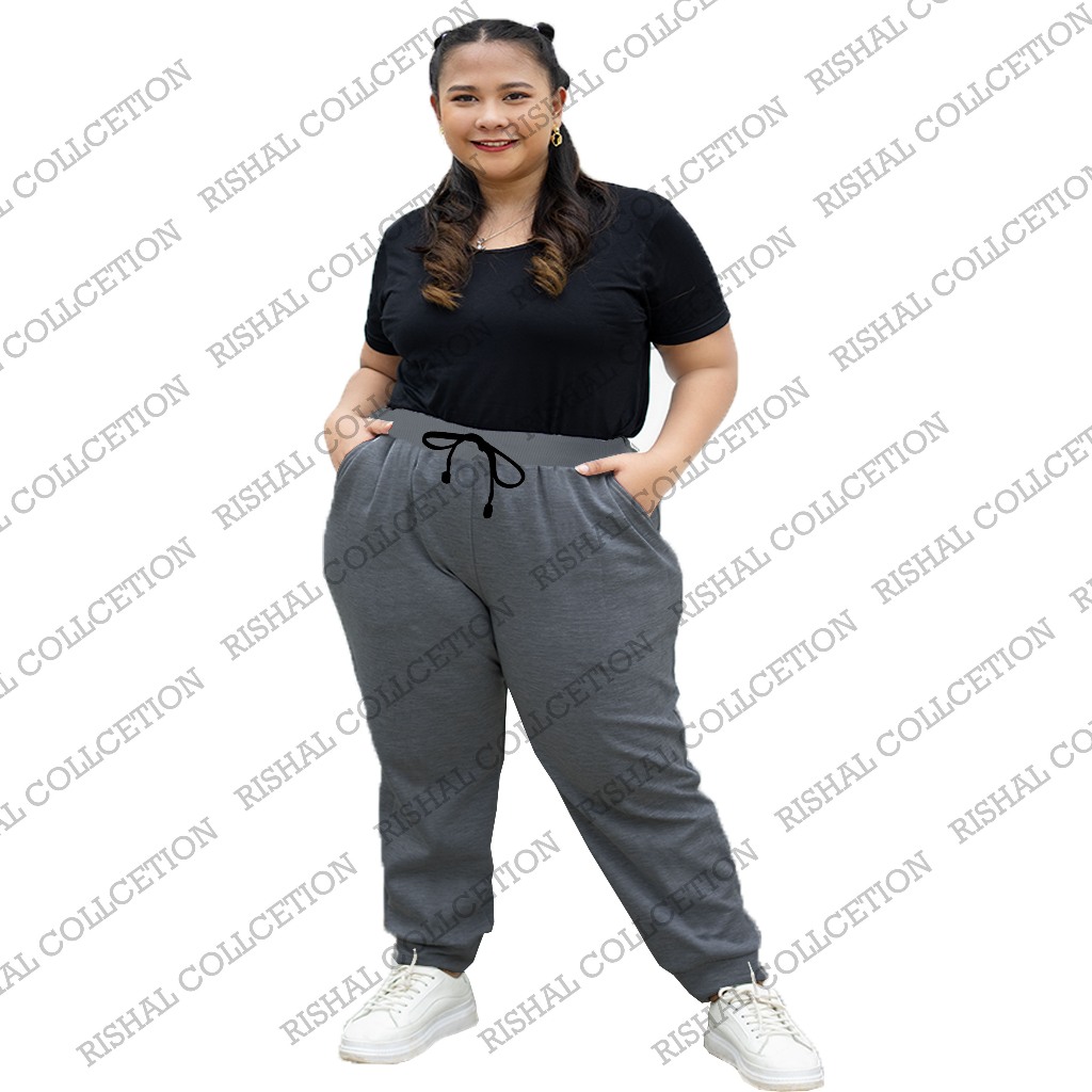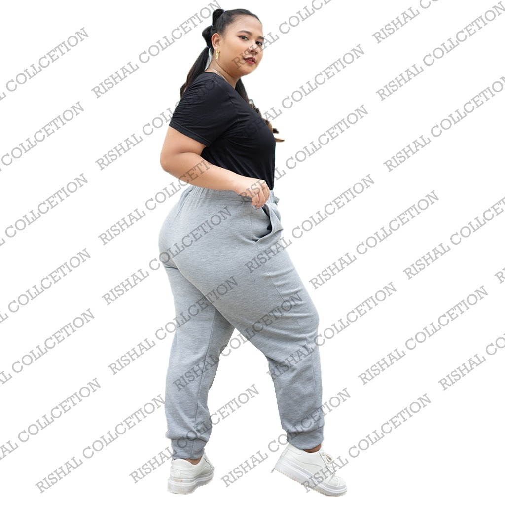 Celana Jogger Training Polos Pria Wanita Flacce Lembut dan Adem Super Jumbo Max 140KG