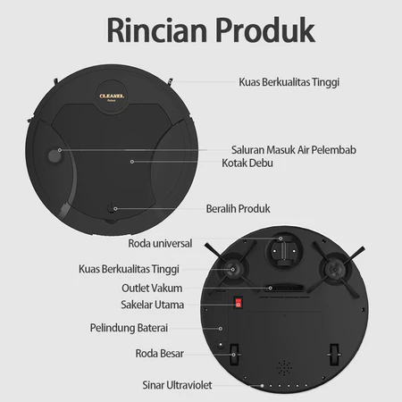 Robot Vacuum Cleaner 5 in 1 Portable Penyedot Debu Rumah Sapu Otomatis Robot Pembersih Lantai Humidifier/Sterilisasi