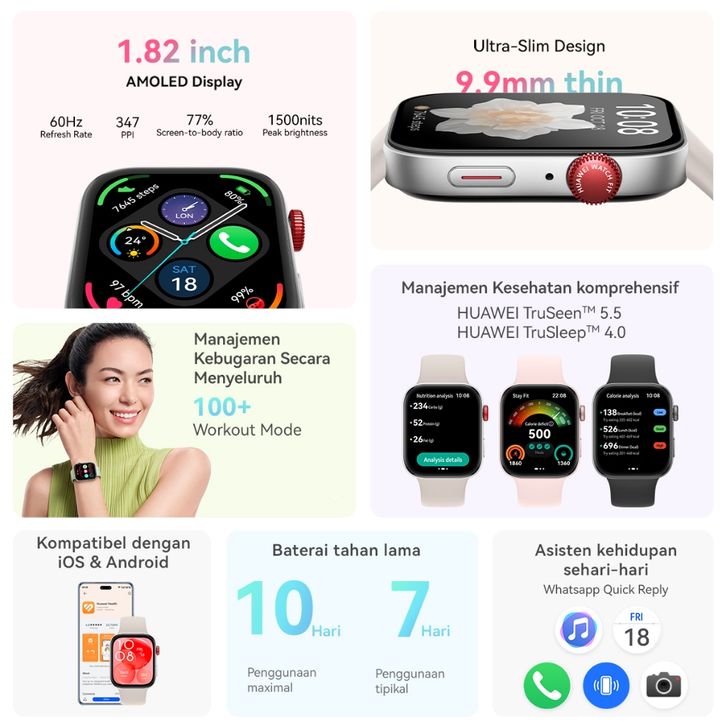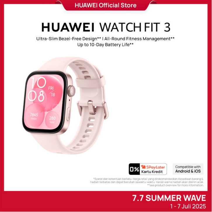 Huawei Watch Fit 3 Smartwatch | Ultra-Slim Bezel-Free Design | 1.82" Amoled Display | All-Round Fitness Management | Up