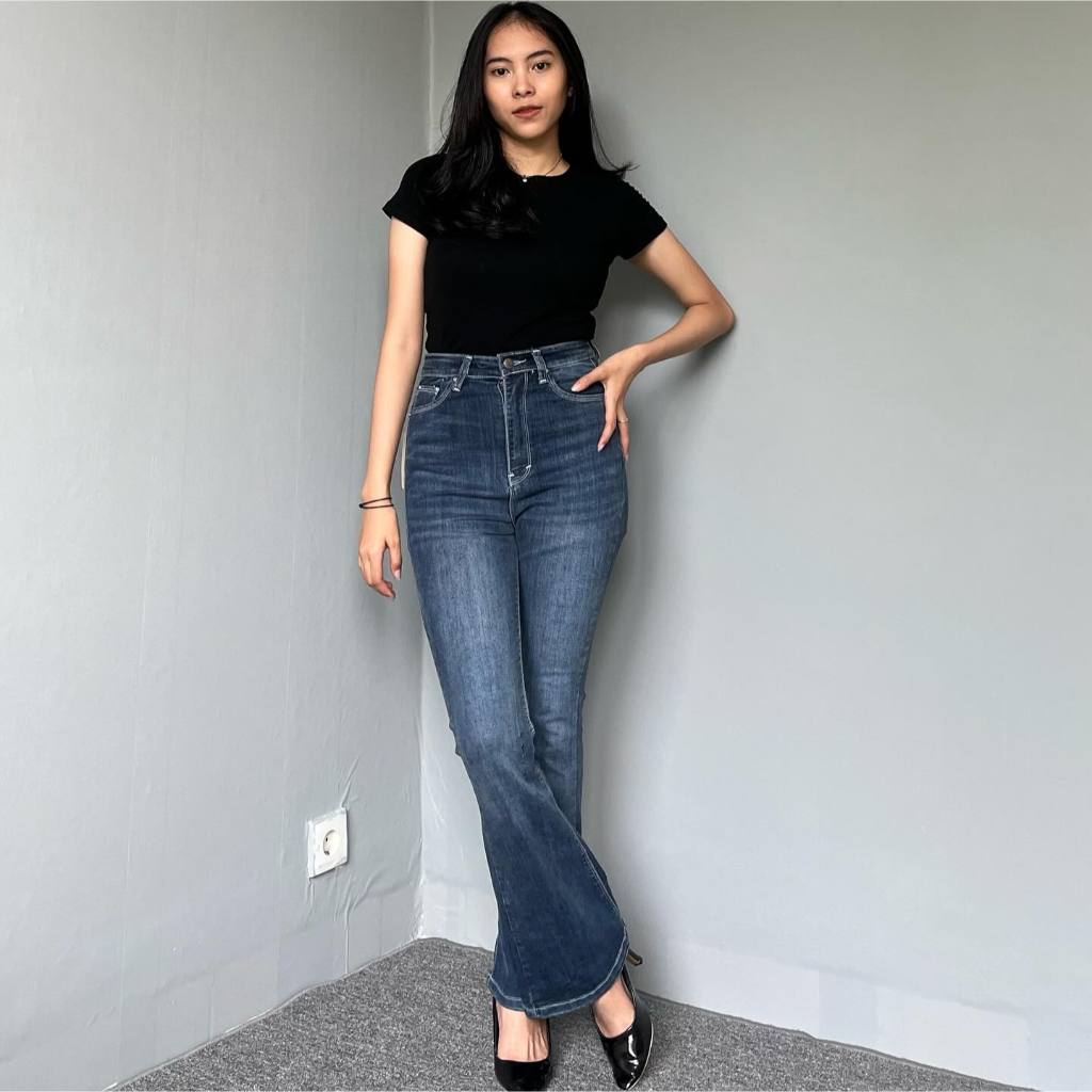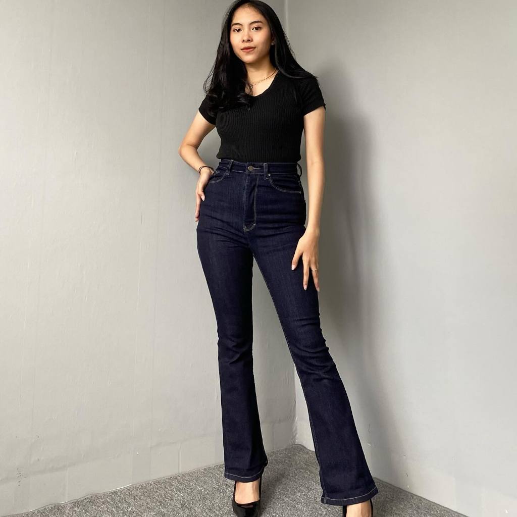ZOE CUTBRAY HIGHWAIST STRETCH SERIES MODEL KOREA KEKINIAN FLARE BOOTCUT DENIM JEANS WANITA PREMIUM QUALITY