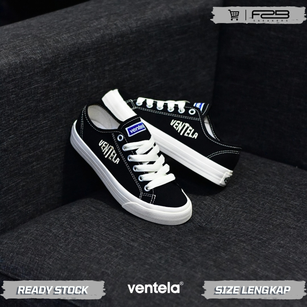 VENTELA EVO LOW BLACK NATURAL SIZE 35-44 SNEAKERS FOR MAN AND WOMEN SEPATU SEKOLAH LOKAL MURAH DAN NYAMAN (GRATIS KAOS KAKI & TAMBAHAN TALI)