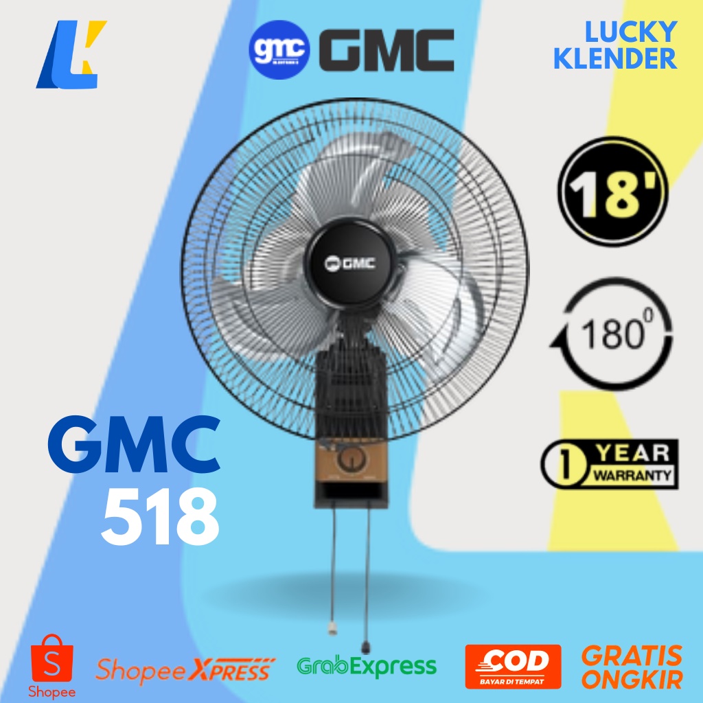 Kipas angin dinding besi GMC 518 18 inch 18in Tornado Wall Fan GMC 508/509 SNI Hitam