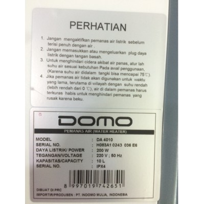 water heater domo da4010 pemanas listrik domo da 4010 10liter 200watt