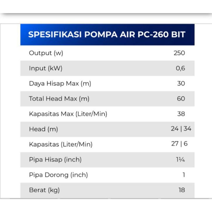 Pompa Air Jet Pump SHIMIZU PC 260 Bit Sumur Dalam Ori(Polos) PC-260BIT