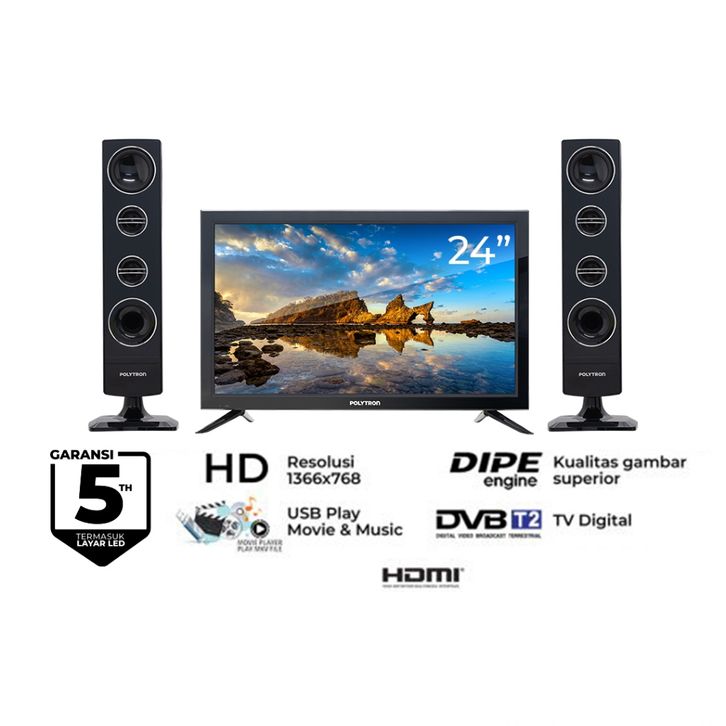 Led Tv Polytron Cinemax 24 inch 24inch PLD24TV0855 PLD 24TV0855 Digital DVB T2 Speaker Tower Garansi 5 thn