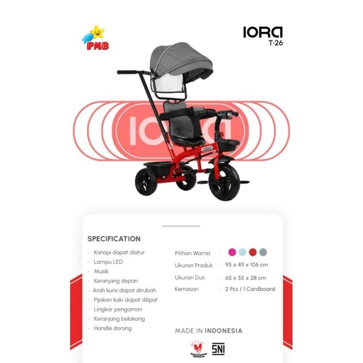 SEPEDA RODA TIGA ANAK IORA T15 T25 T26 PMB MUSIC LAMPU T-25 T-26 T15