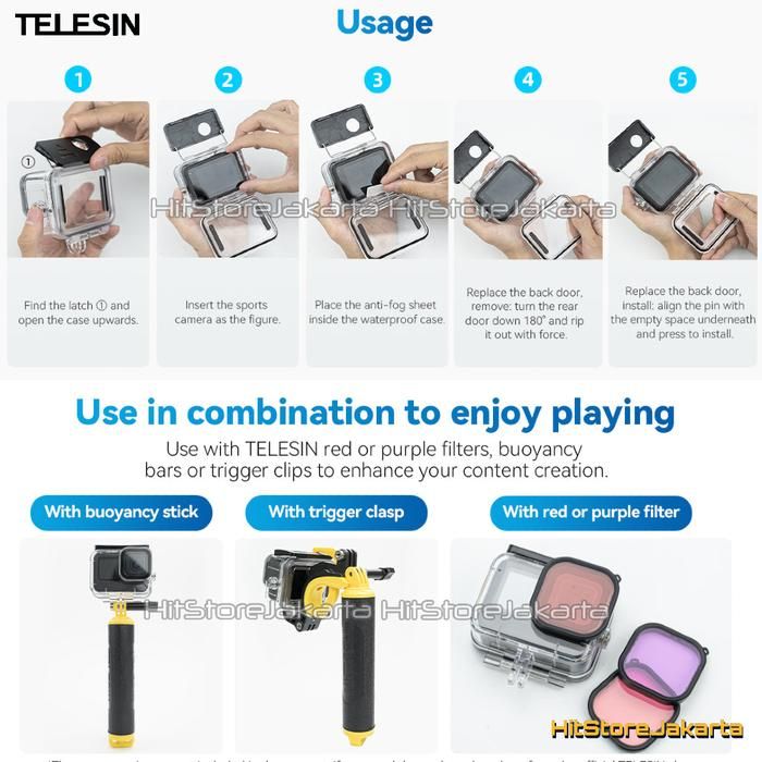 Telesin Waterproof Case Skeleton Backdoor Gopro 11 10 9 Dive Case