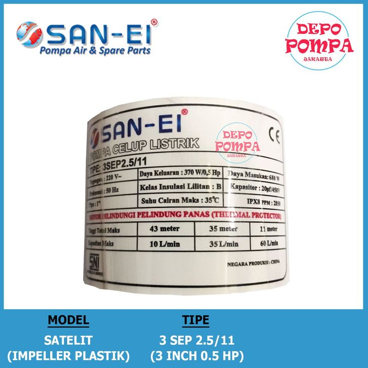 Pompa Air Satelit SAN EI 3 INCH 0.5 HP KOMPLIT KABEL BIRU ASLI