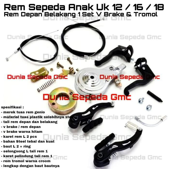 1 group set rem sepeda anak 12 / 16 / 18 inchi depan belakang v brake