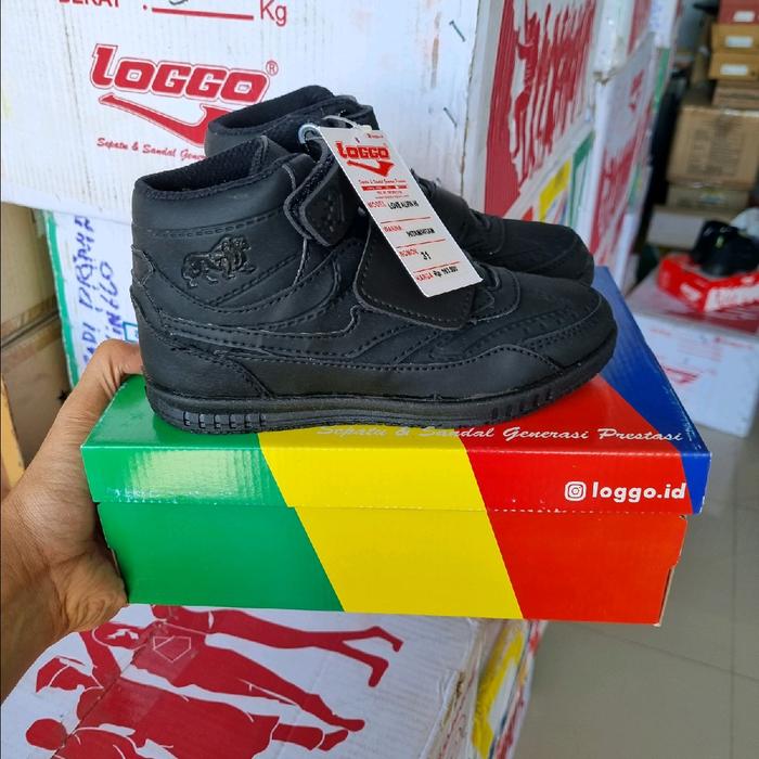 Promo sepatu loggo hitam anak perekat murah Fashion