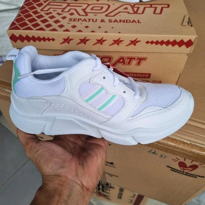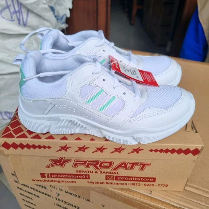 Promo Sepatu Olahraga Wanita Putih CL 330. - Putih/Hijau 37 Keren