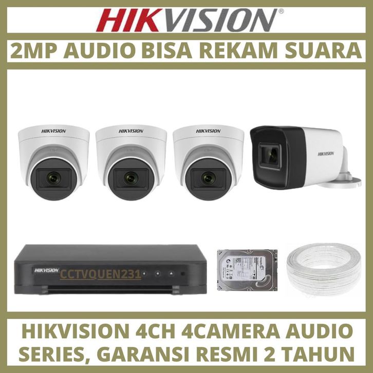 PAKET CCTV HIKVISION AUDIO SERIES 4 CHANNEL 4 KAMERA 2MP 1080P TURBO HDTVI CAMERA CCTV KOMPLIT