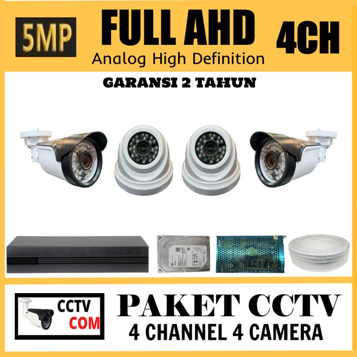 PAKET CCTV 4 CHANNEL 4 CAMERA FULL AHD 5MP IR SONY 1080P AUDIO/NON AUDIO KOMPLIT TINGGAL PASANG
