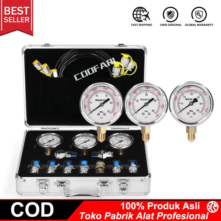 Kit Tester Pegasan Hidrolik untuk Excavator dengan Hubungan Coba dan Kotak Portabel untuk Penggunaan Industrial 8600PSI