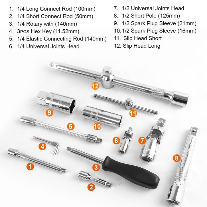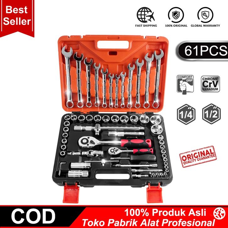 COOFARI Kunci Set Socket Wrench Pas Sok Set 61 pcs 1/4 1/2 Car Repair Tool Kunci Inggris