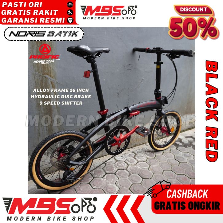 Pacific Noris Batik 16 Inch Sepeda Lipat Alloy Dewasa 9 Speed Pasific
