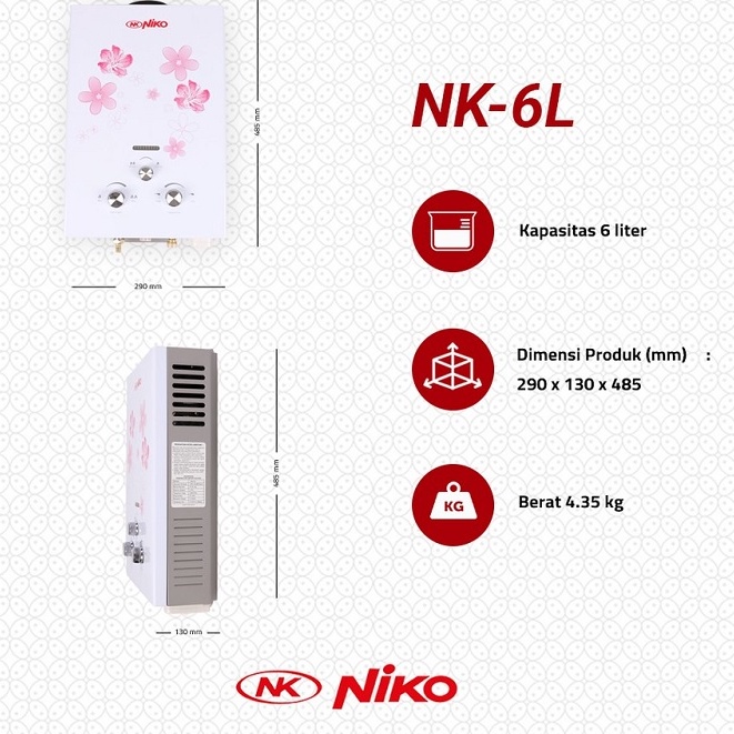Gas Water Heater NIKO NK 6 LN LN2 putih