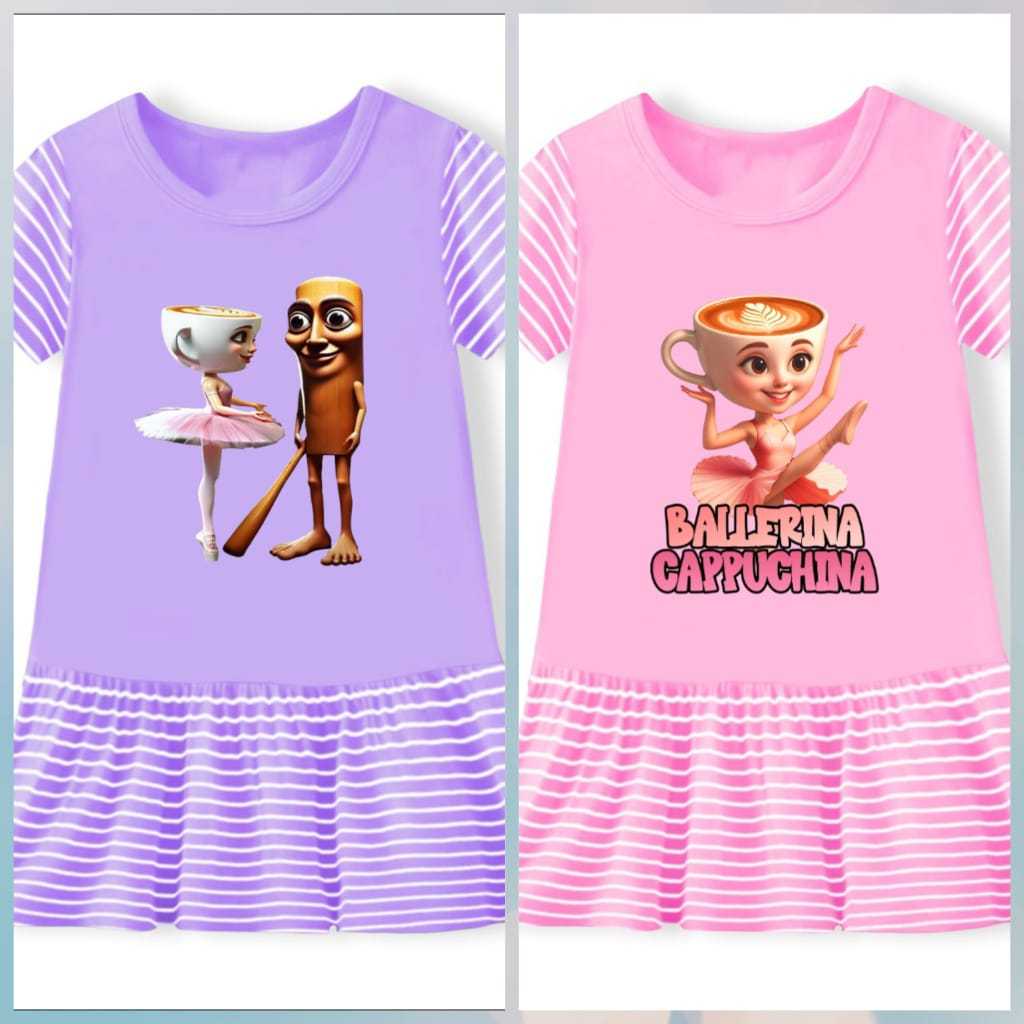 Dress Anak Perempuan Motif Ballerina dan Tung Tung Untuk Usia 1-8 Thn Daster Anak Motif Terbaru