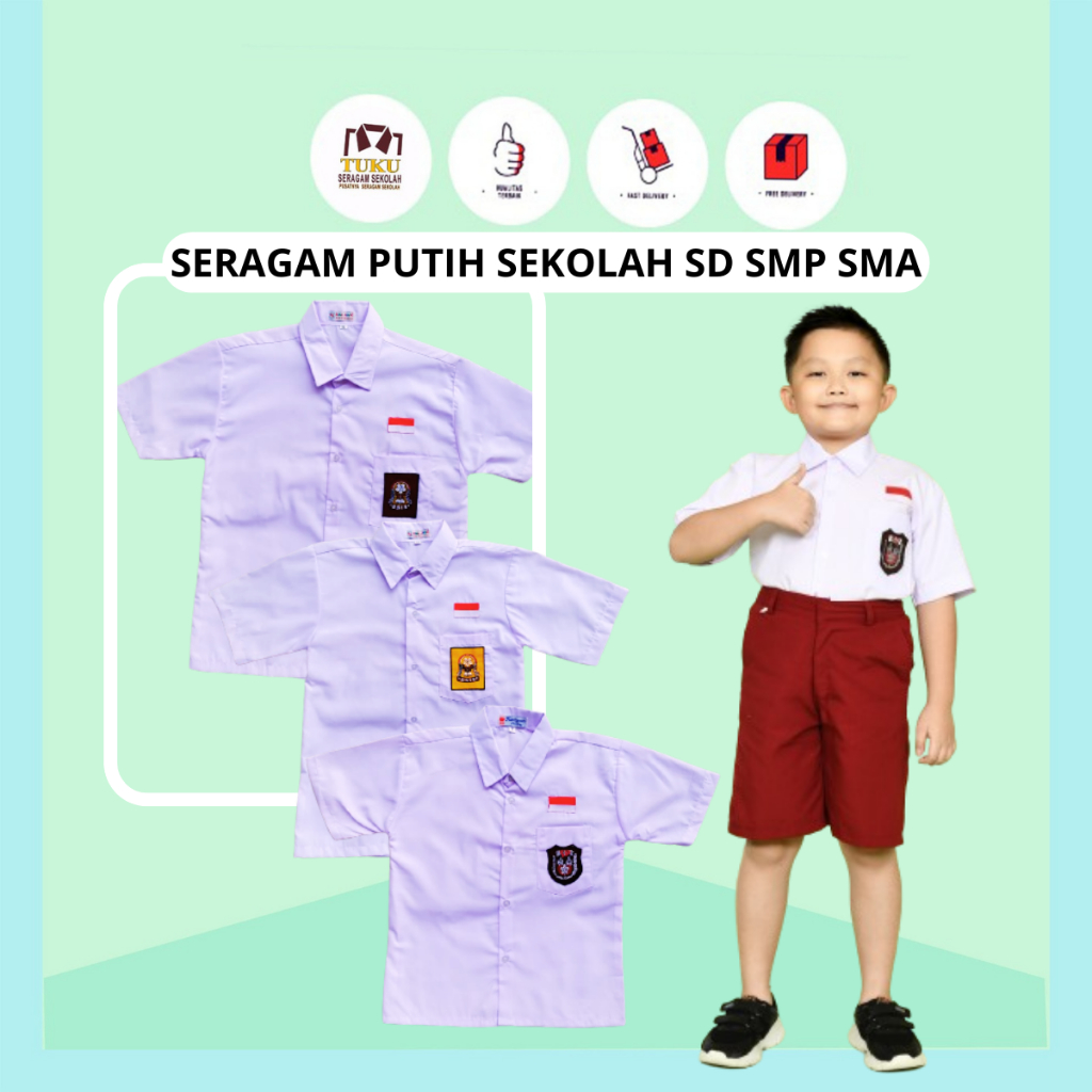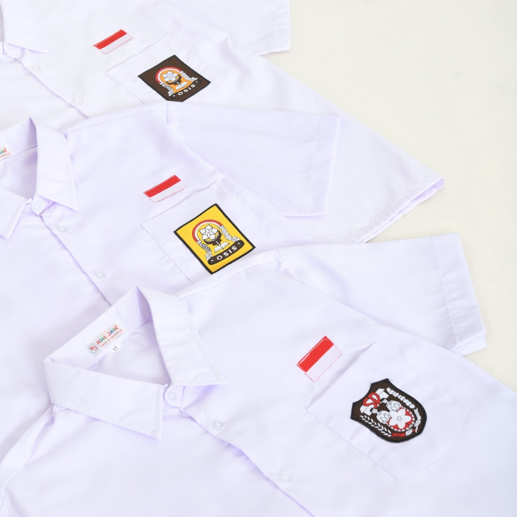 Seragam Sekolah SD MADRASAH SMP SMA SMK Kemeja Putih Baju Atasan Lengan Pendek Bet Bordir