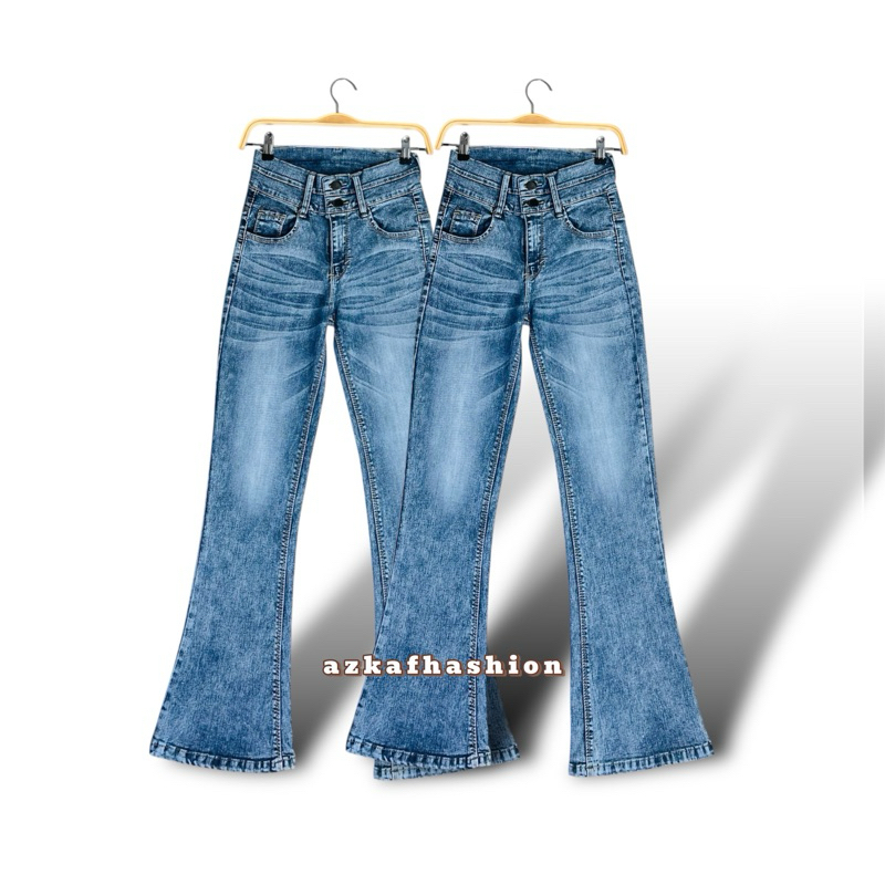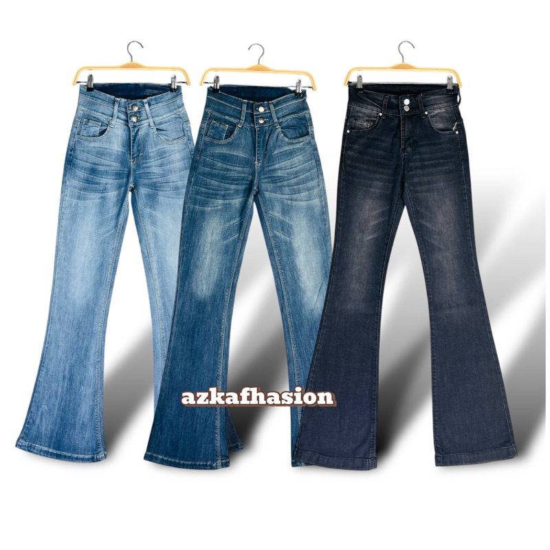 AZKA - CELANA JEANS CUTBRAY FIORA HAIGWAIST WANITA KANCING DUA