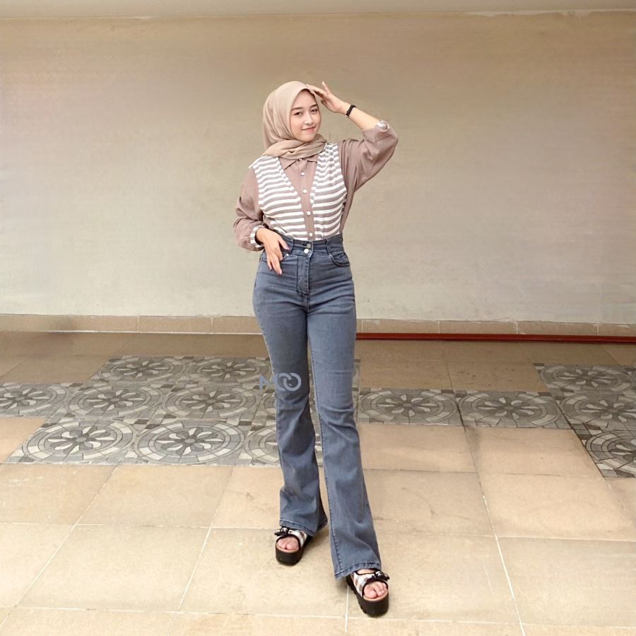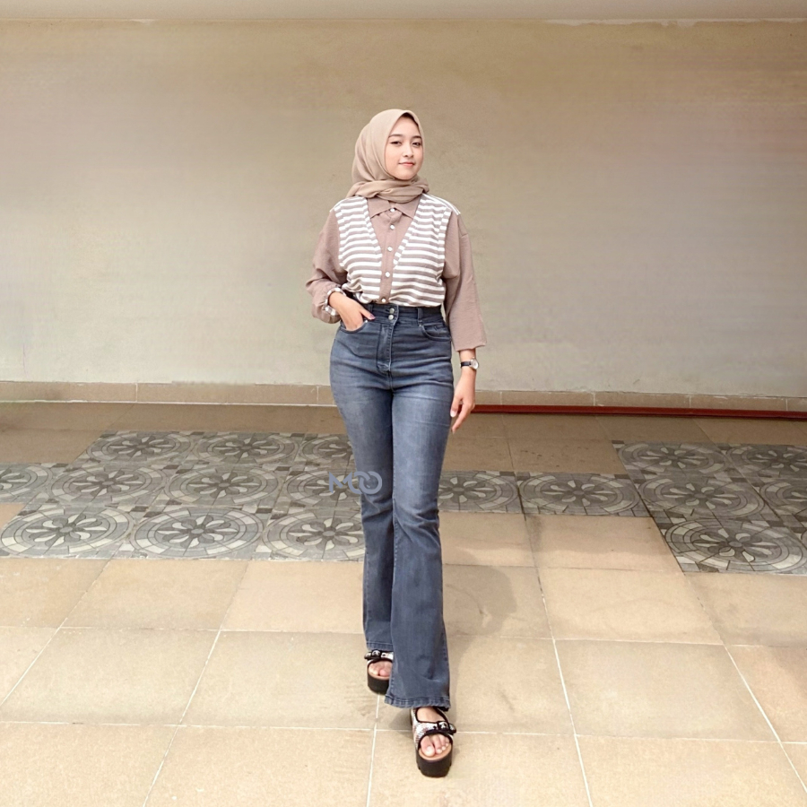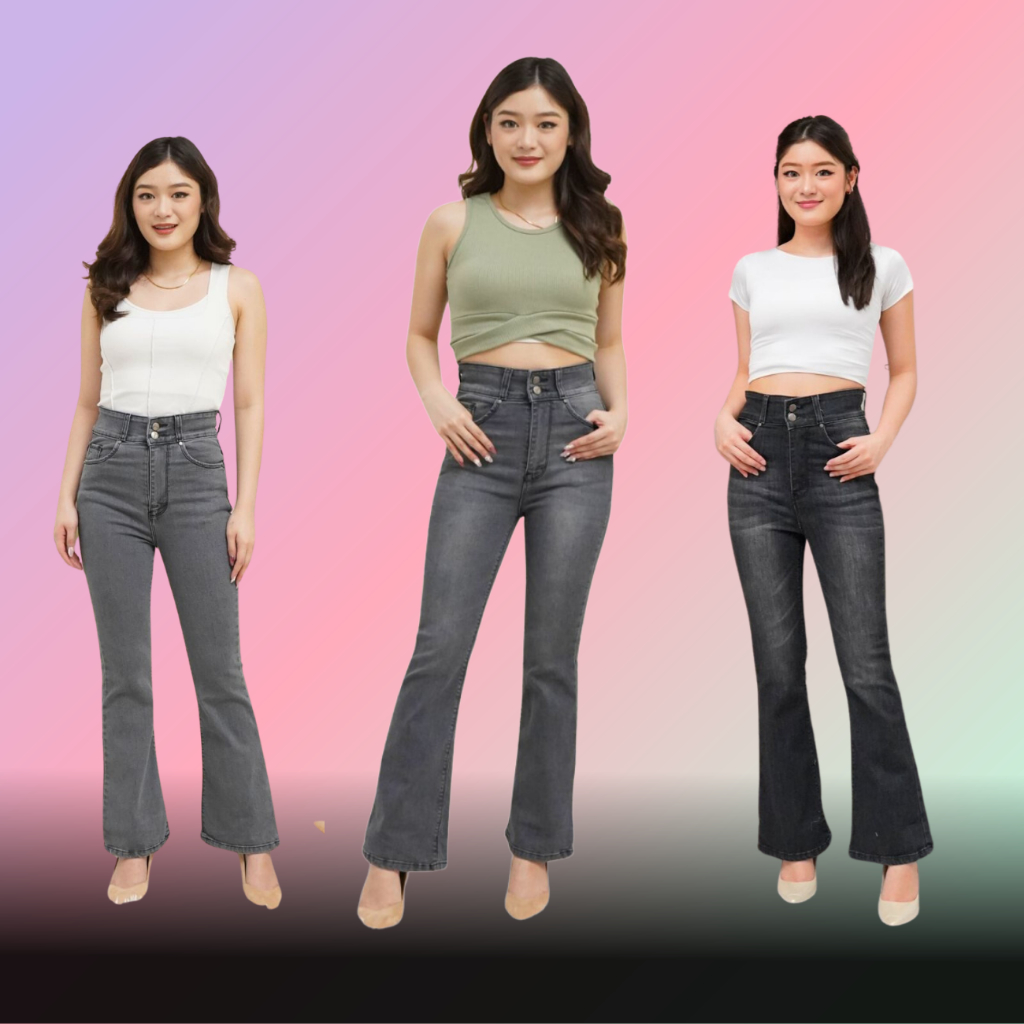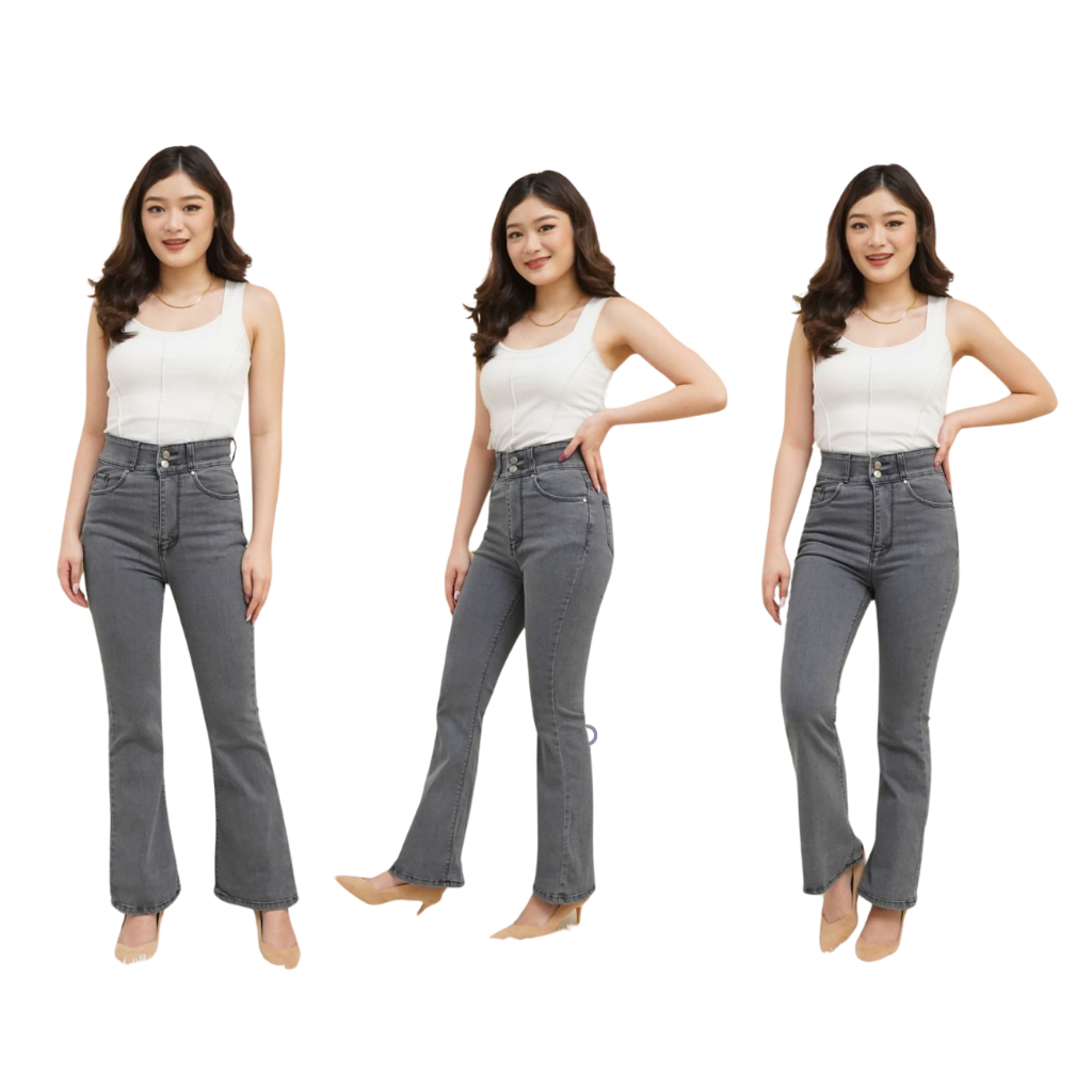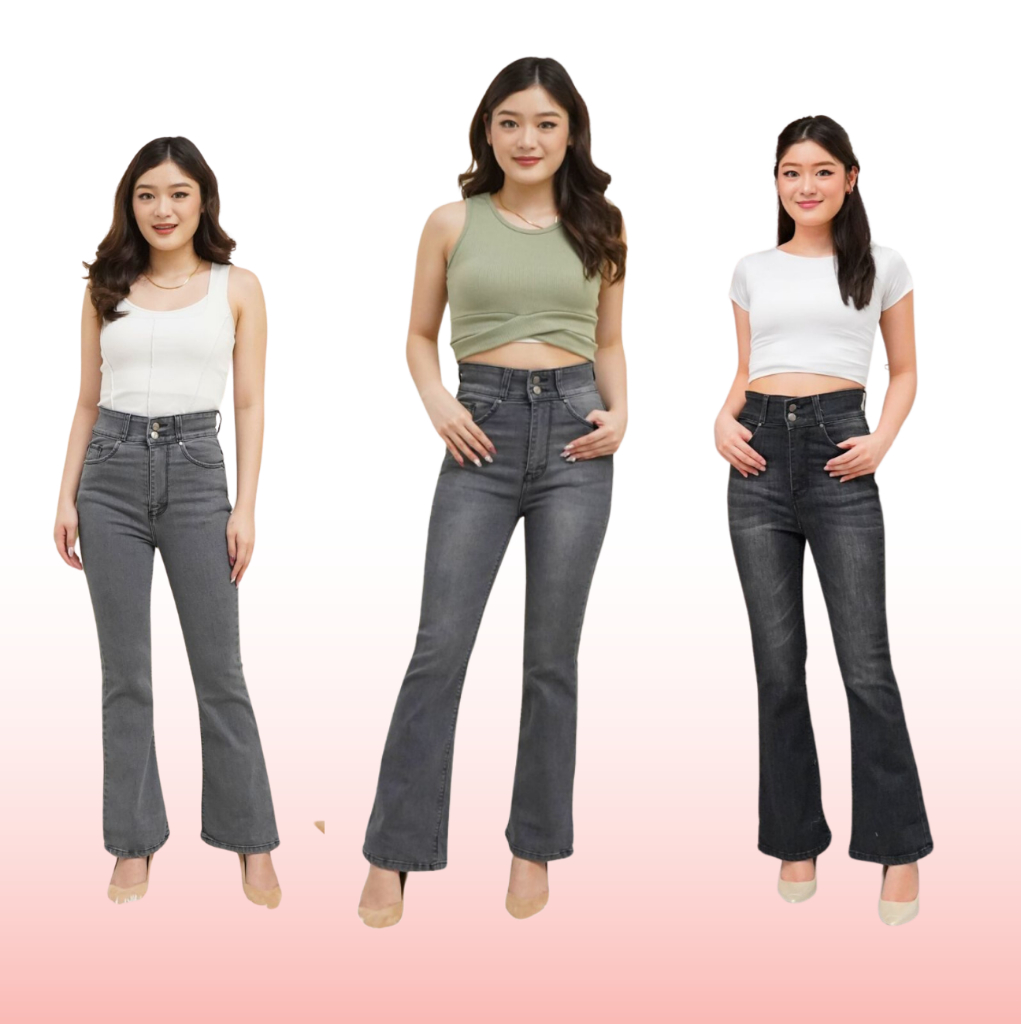 [MCOJEANS] CELANA CUTBRAY ULTRA HIGHWAIST LIVY GREY KANCING 2 BUTTON SOFTJEANS STREATCH MELAR PANJANG