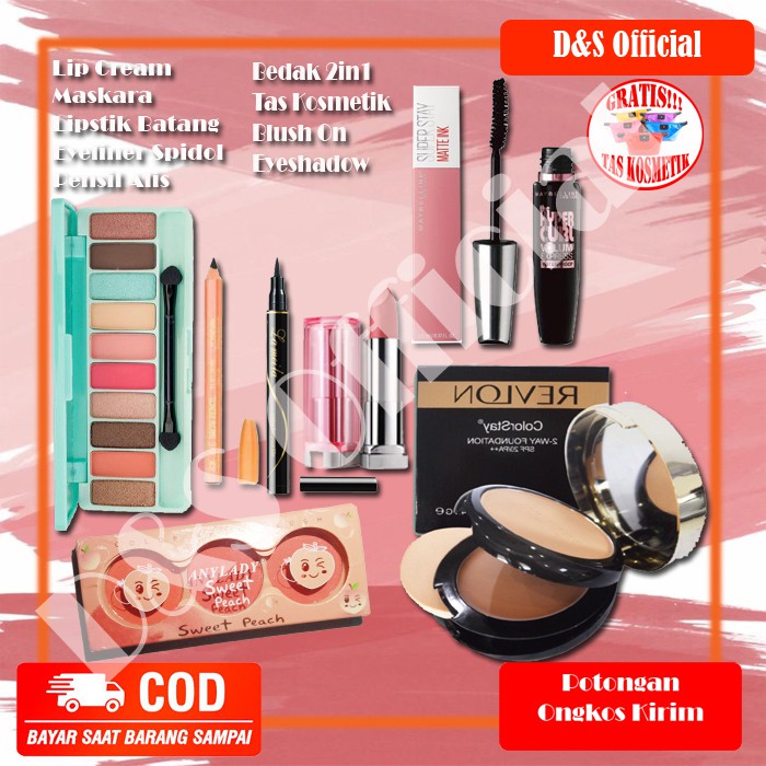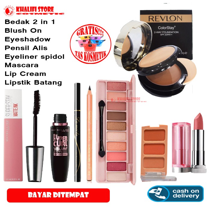 PAKET KOSMETIK MAYBELLINE / PAKET MAKEUP WANITA 9 IN 1 - PENSIL ALIS - MASKARA - EYESHADADOW - BEDAK