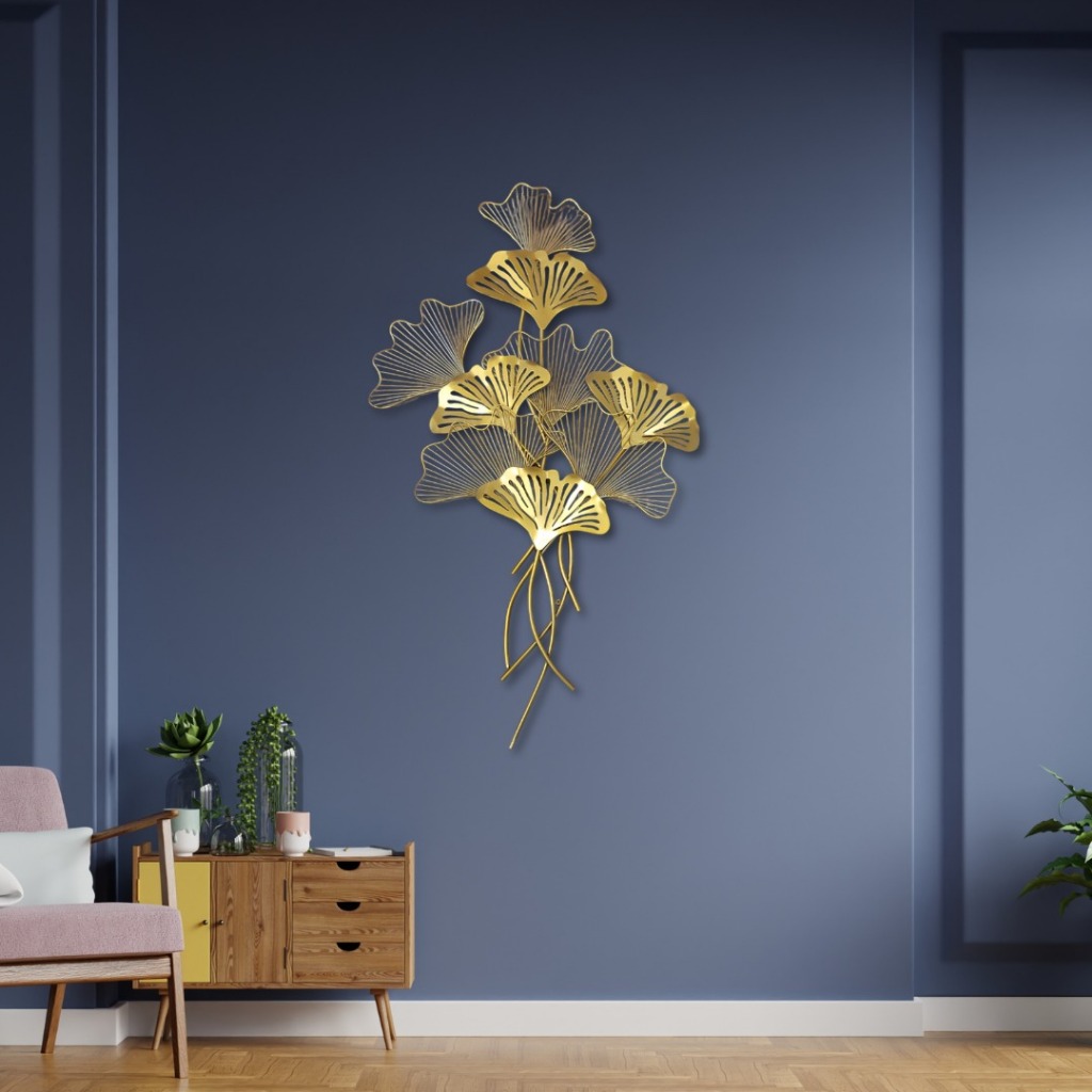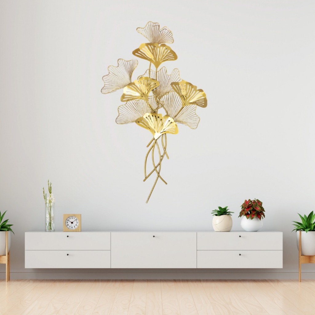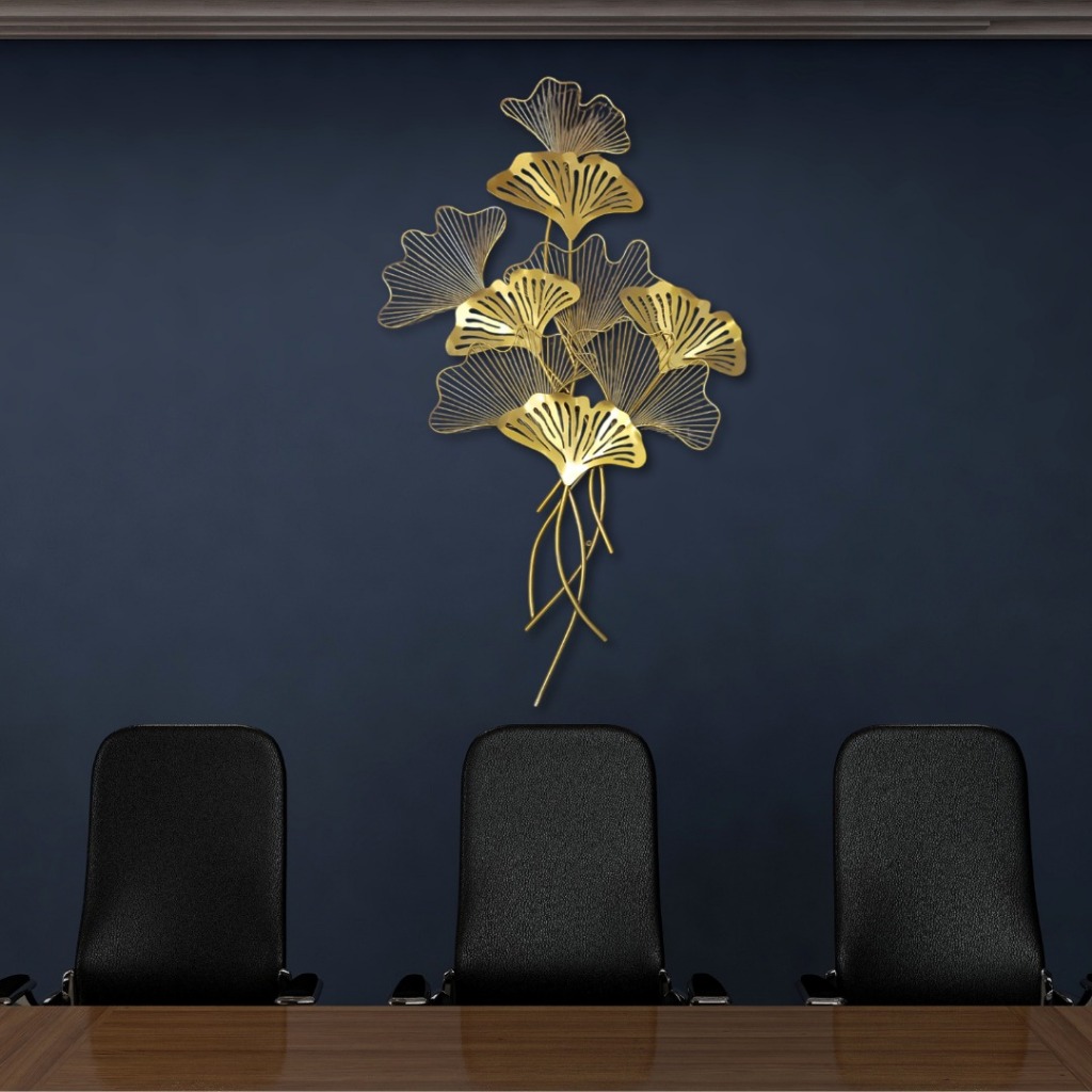 Hiasan Dinding Daun Gingko Stainless Emas Desain Artistik Dekorasi Elegan untuk Rumah dan Kantor