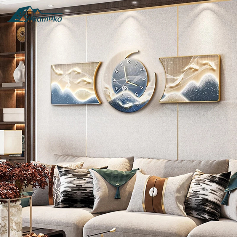 Lampu Dinding Lukisan Jam Hiasan Dinding Ruang Tamu Jam Dinding Nordic Modern hitam Lukisan Krystal Porselin Wall Decor