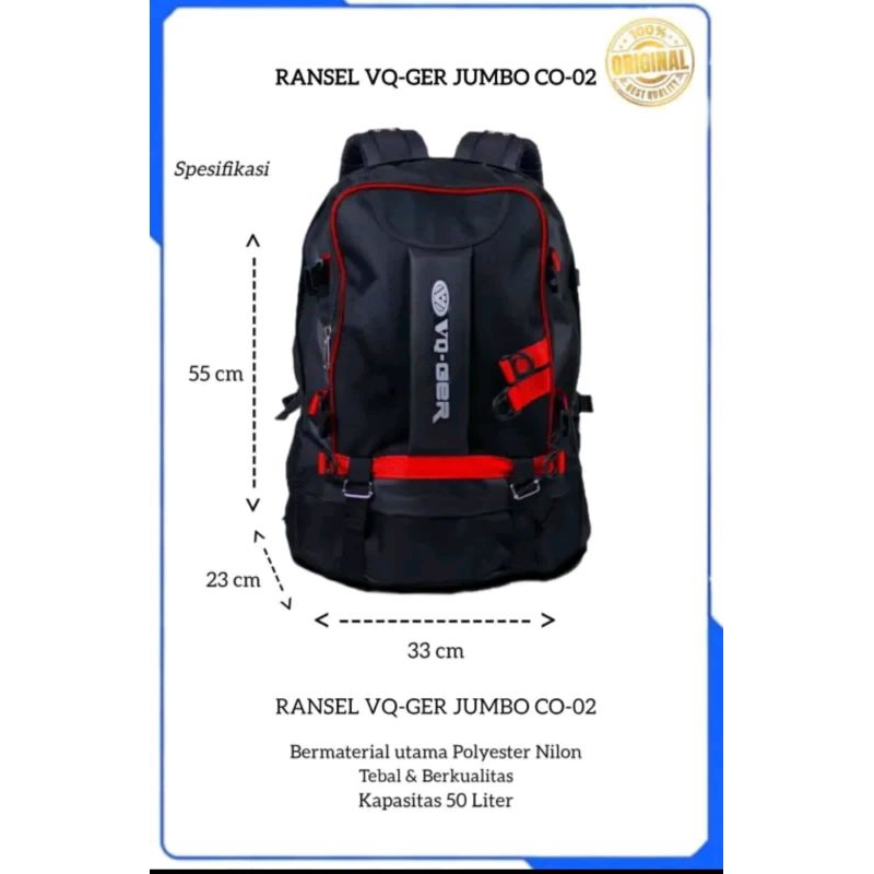 (VQ-GER01) Tas Ransel Jumbo / Tas Travelling / Tas Punggung Jumbo / Tas Mudik / Tas Gendong 50L