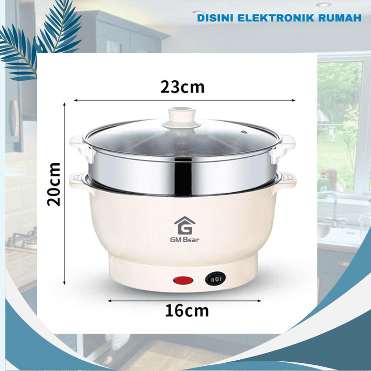 Panci Listrik 2in1 GM Bear 1225 – Masak & Kukus Sekaligus | Free Steamer Stainless!