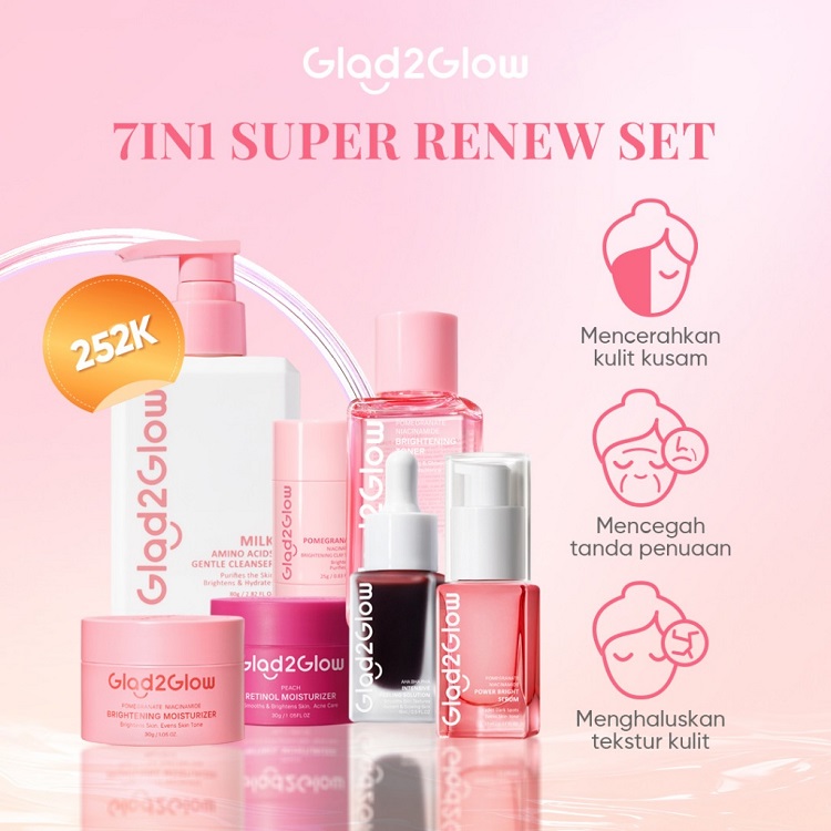 Glad2Glow Glowing & Renew bundle 7in1 7pcs Mencerahkan Wajah Melembabkan Kulit Skincare BPOM Original