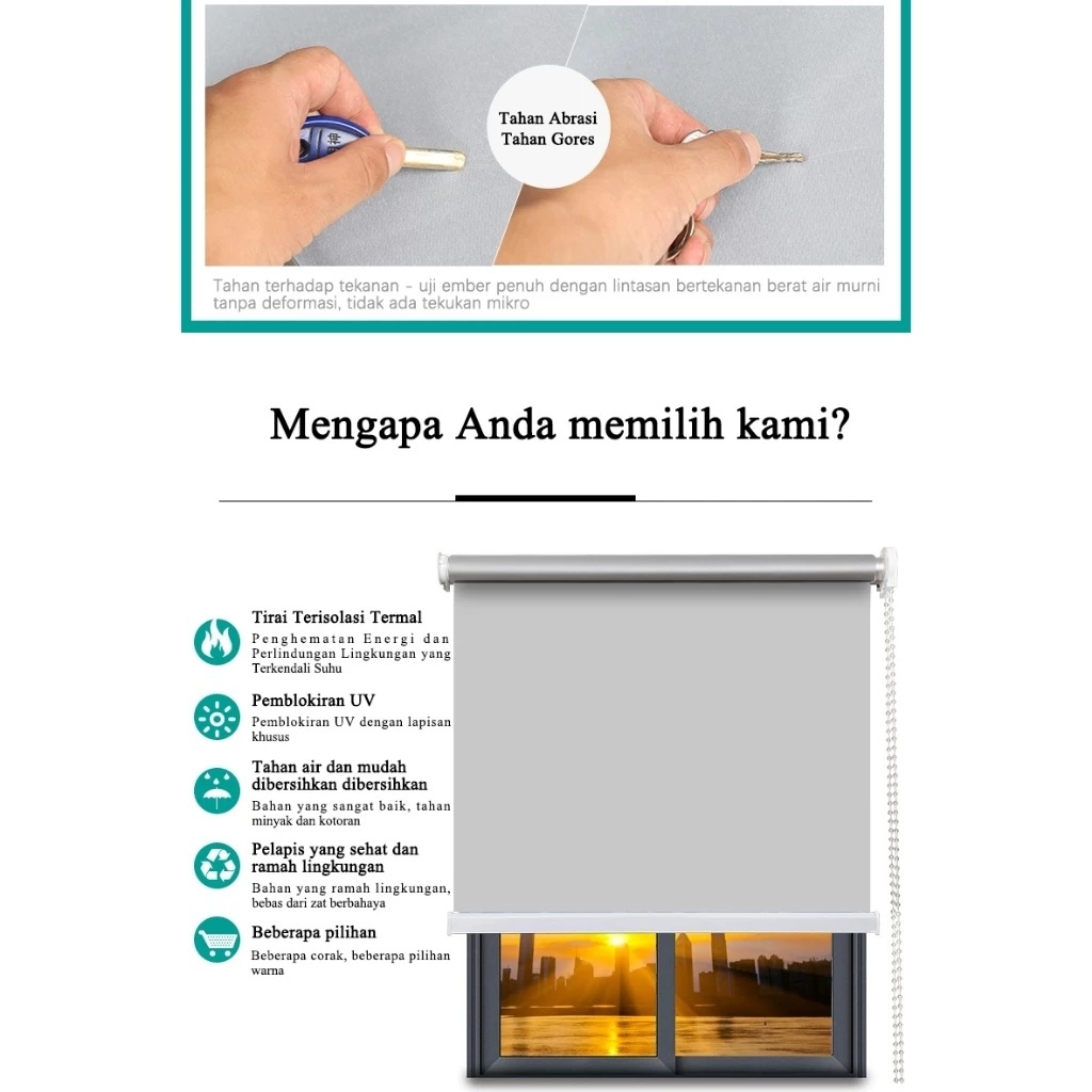 60180 Roller Blind Jendela Roller Blind Blackout 85 PERSEN Tirai Jendela Tirai Jendela Non Headrail Jendela Tirai Gorden Tira