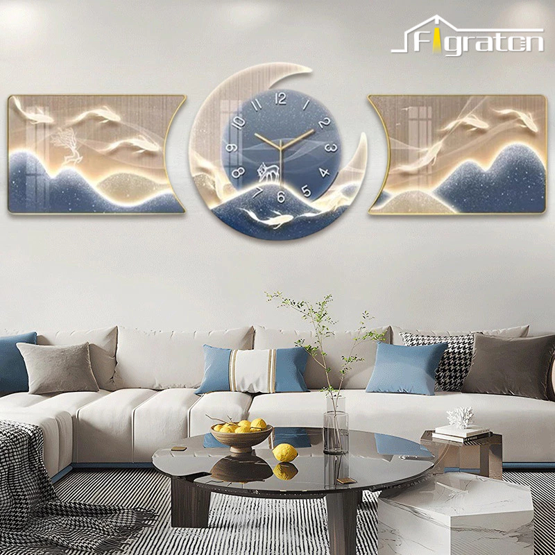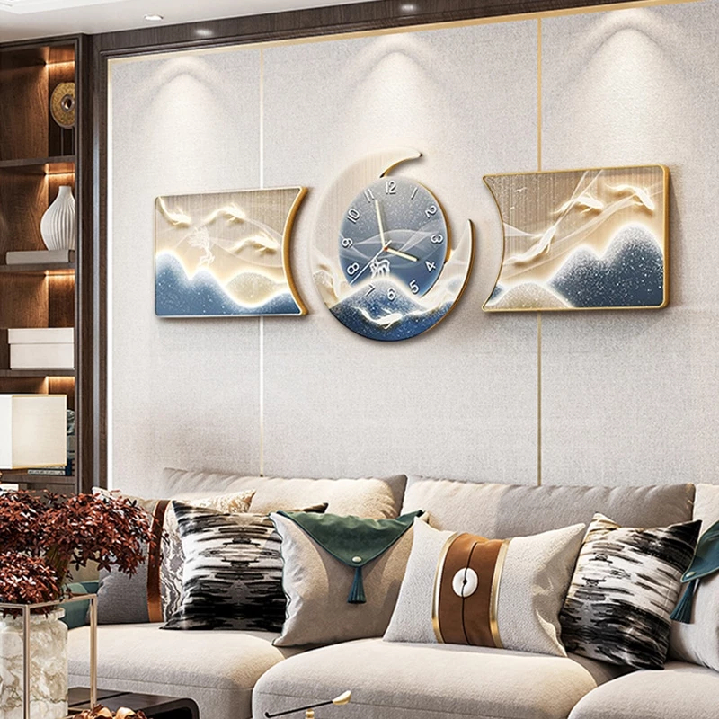 Lampu Dinding Lukisan Jam Hiasan Dinding Ruang Tamu Jam Dinding Nordic Modern biru Lukisan Krystal Porselin Wall Decor