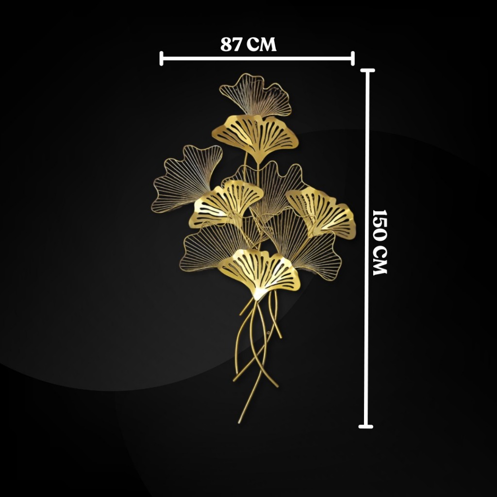 Hiasan Dinding Daun Gingko Stainless Emas Desain Artistik Dekorasi Elegan untuk Rumah dan Kantor