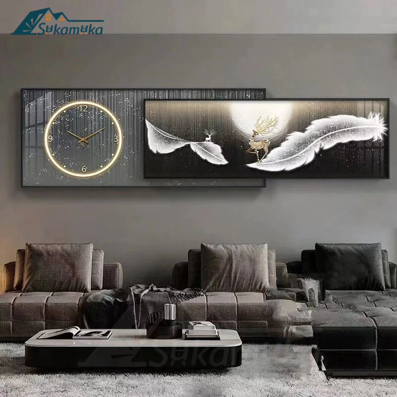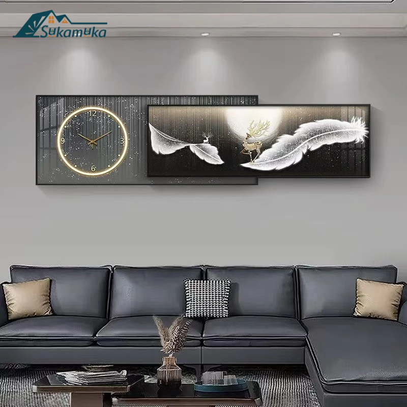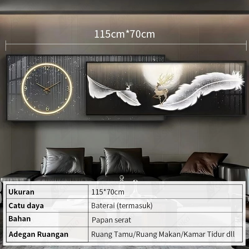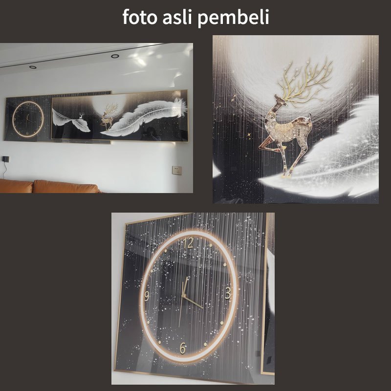 Jam Dinding Besar Mewah Aesthetic 115cm Lampu Hias Dinding Ruang Tamu Jam Dinding Nordic Modern Lukisan Krystal Porselin