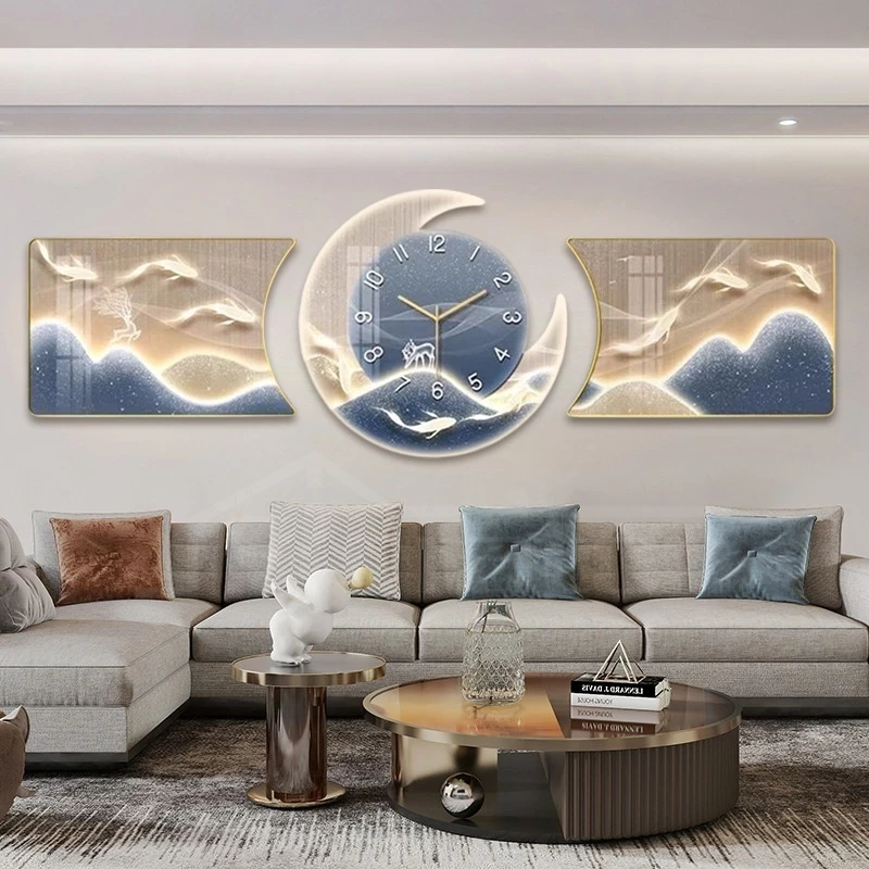 Lampu Dinding Lukisan Jam Hiasan Dinding Ruang Tamu Jam Dinding Nordic Modern biru Lukisan Krystal Porselin Wall Decor
