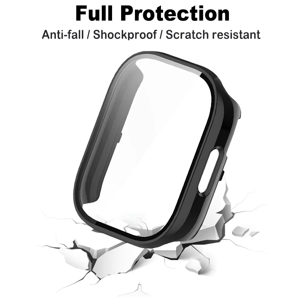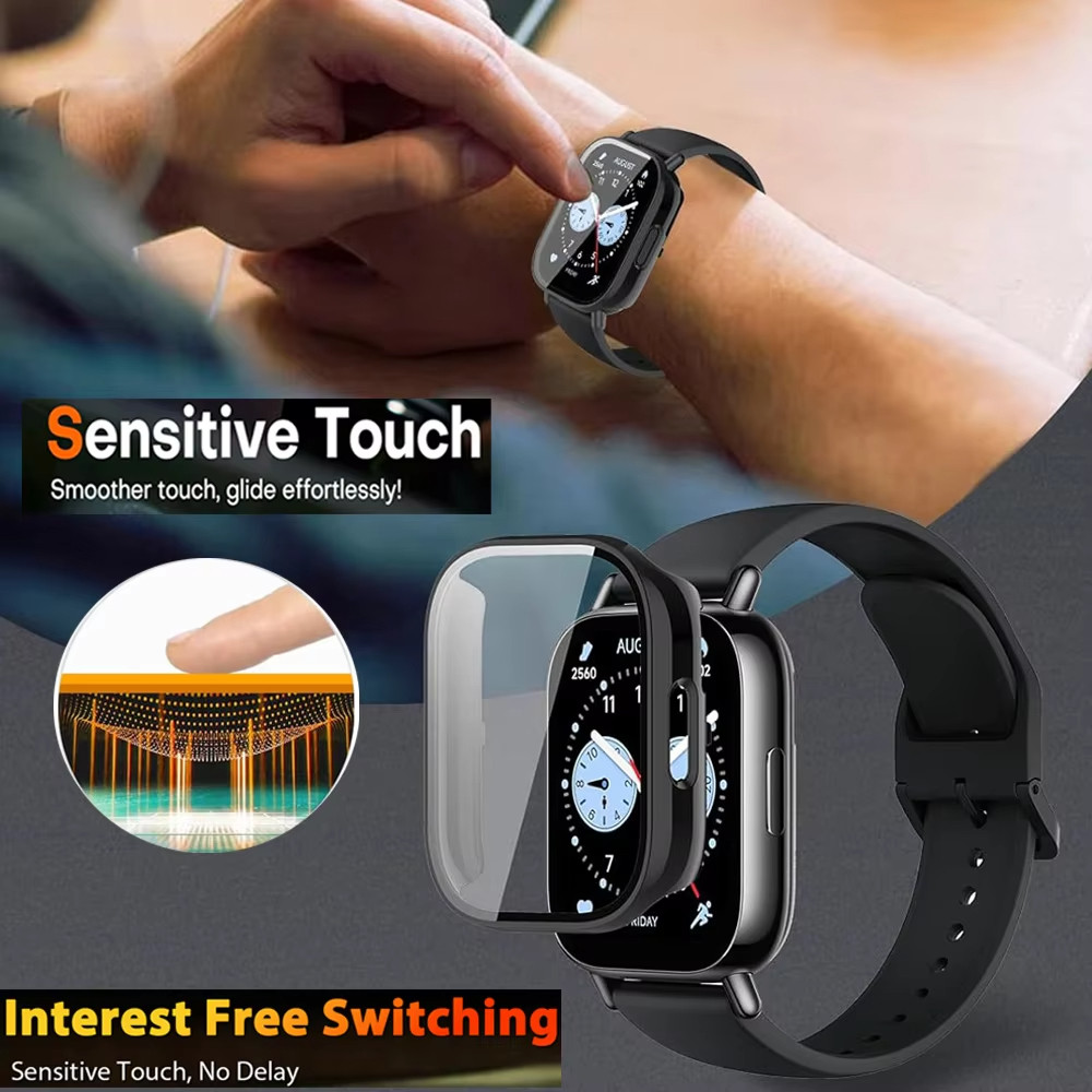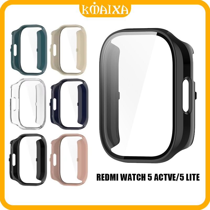 PC Case for Redmi Watch 5 Active, Anti Gores 9H Hard Tempered Glass Film Screen Protector Shell Cover Bumper for Jam Tan