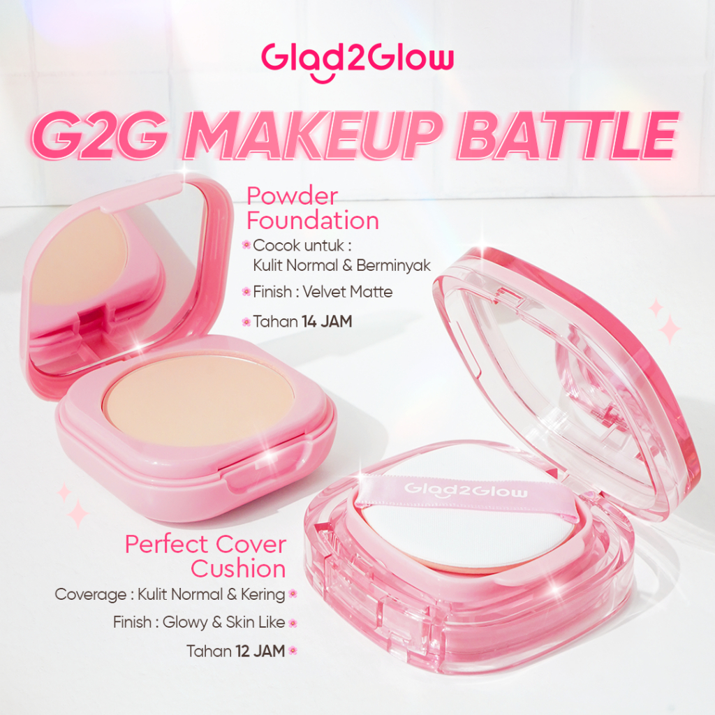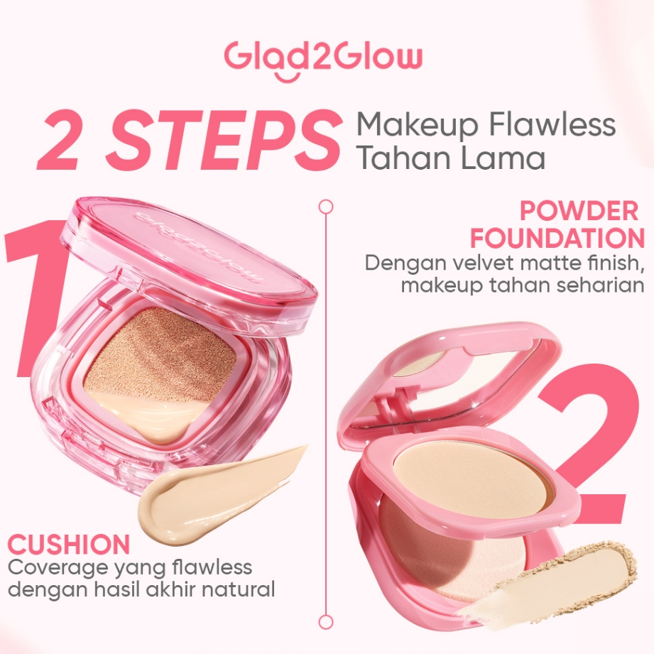 G2G MAKEUP PAKET 2PCS PERFECT MAKEUP SET PAKET GLAD2GLOW PERFECT COVER CUSHION 11G + GLAD2GLOW PERFECT BLURRING POWDER FOUNDATION 8.5G