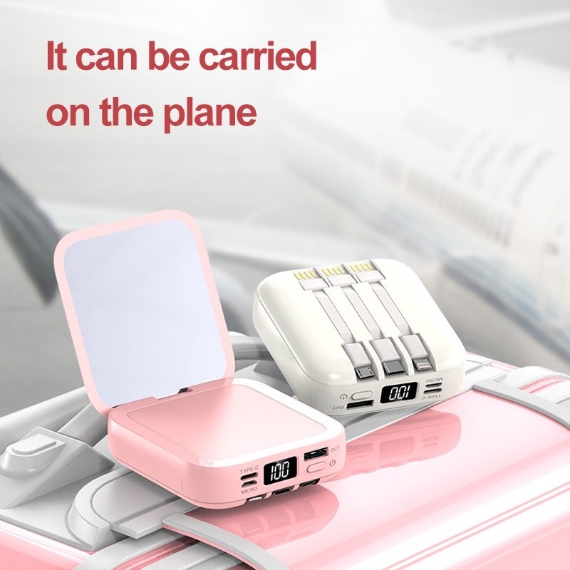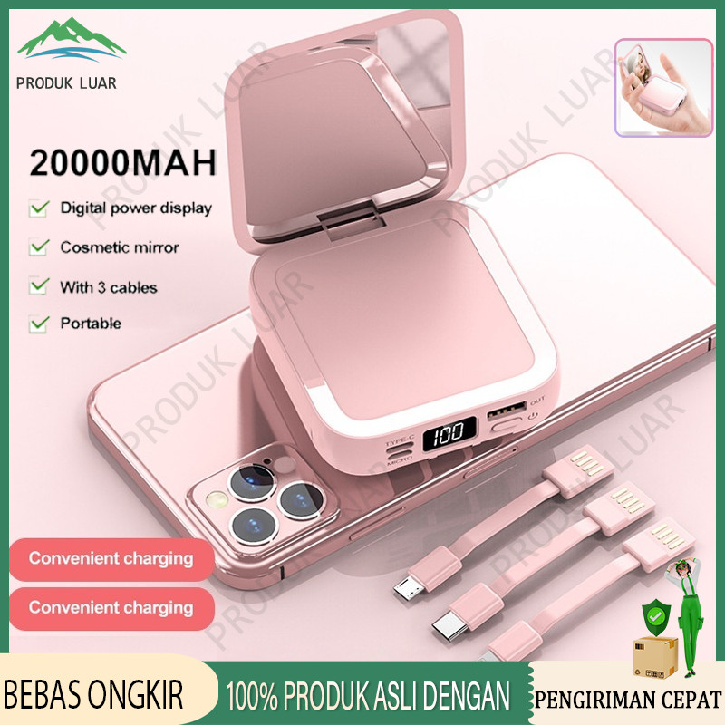 Power Bank MINI Fast Charging 20000mAh with Make-up Mirror Powerbank Fast Charging 3 USB Mini Dual USB Portable