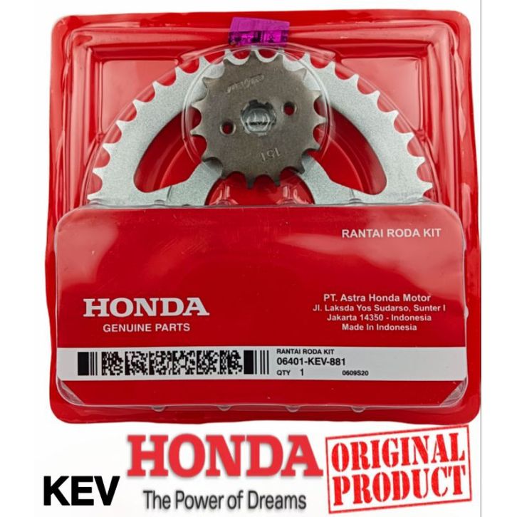 KEV gear honda ori Asli Gear Set + Rantai UK 15T, 40T Supra X,supra tromol Supra Fit Lama KUALITAS ORIGINAL