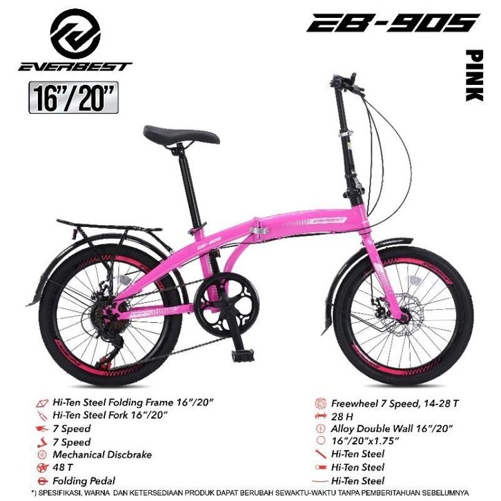 Pacific Everbest eb 905 16 20 Inch Sepeda Lipat Pasific Steel 7 speed Rem Cakram Dewasa Remaja