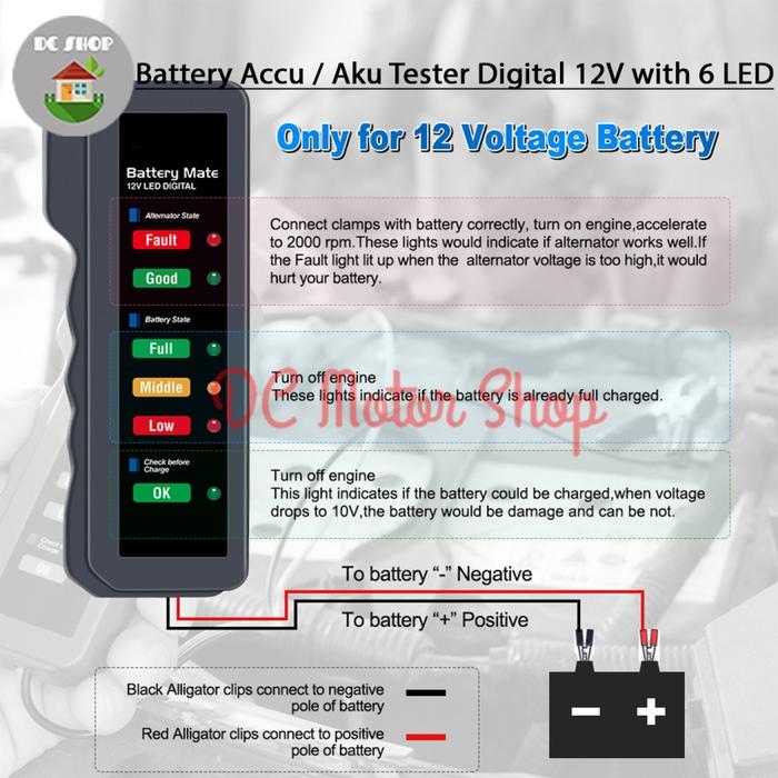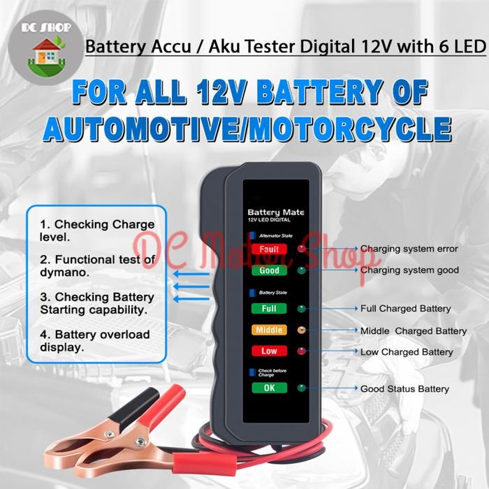 Alat Cek Aki Mobil Motor Test Battery ACCU Volt Tester 12V DC BT782